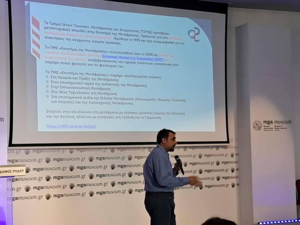 Στο πλαίσιο των ημερών έρευνας και καριέρας, το Τμήμα Ξένων Γλωσσών, Μετάφρασης και Διερμηνείας του Ιονίου Πανεπιστημίου (ΤΞΓΜΔ) διοργανώνει την Παρασκευή, 16 Μαΐου 2025, 9:00-19:00, ημερίδα αφιερωμένη στην προετοιμασία για μια επιτυχημένη καριέρα στα γλωσσικά επαγγέλματα, με τίτλο «Μεταφράζοντας το μέλλον: Προοπτικές Καριέρας στα Γλωσσικά Επαγγέλματα».
